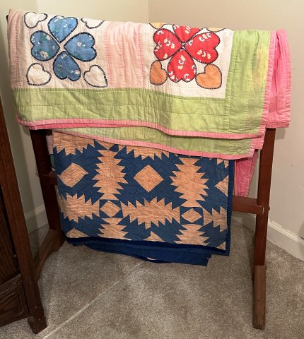 ANTIQUES AND COLLECTIBLES: Unique, Working self playing piano with 100+ rolls of music, Philco tabletop record player and 33, 45, and 78 records, handmade quilts and quilt rack, 15 cent Mcdonald’s replica cups, old girl scout badges, CAST IRON: pans, kettle, squirrel nutcracker. Vintage train tracks, wood school desk, tabletop radios, oil lamps, wicker and wood lamps, wooden churn, shelf clock, other miscellaneous clocks. Retro kids table with two chairs, 8 ft buffet cabinet with bar stools, Handiboy griddle and ice cooler, metal milk can, copper milk can, cast iron wash pot, smoke stands and ash trays, wood storage box and magazine holders, wooden barrel dispenser, and vintage phone table.