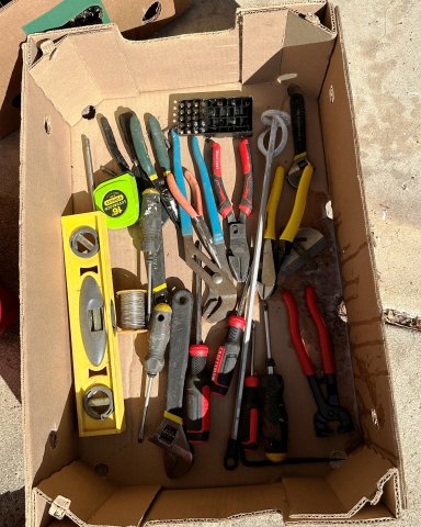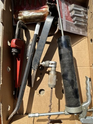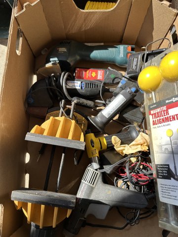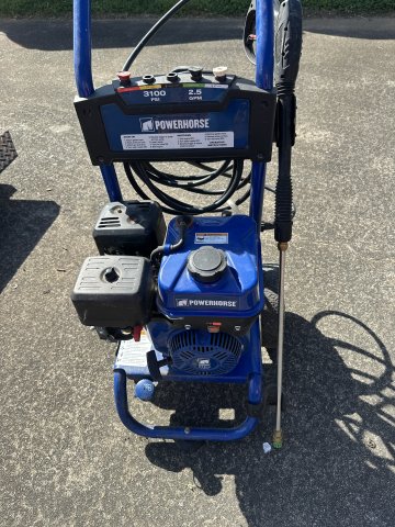 SHOP TOOLS/EQUIPMENT: Power Horse 3100 PSI gas pressure washer Reciprocating saw, Kobalt air compressor, portable air, 2 red tool chests, battery chargers, jump boxes, booster cables, air paint sprayer, buffer, torch, heat gun, nail gun, gig saw, Dremel tool, voltage tester, air compressor, belt sander, two shop vacs, air pump, drop cords, hand saws, snapper edger, miscellaneous lawn and garden tools, miscellaneous hand tools and hardware, hammers, clamps, electric drills, hole saws, socket sets, hand trucks, auto carrier all, roadside assist kits, grease guns, limb trimmer, electric and hand staplers and staples, lawn sprayers, tie downs, bungee cords, gas cans, shop tools, creeper, tool boxes, and shelving (3), bug zapper, small coolers, gas cans, hand siphon and funnel, electric hedge trimmer, blower, weed eater, mini chainsaw, aluminum step ladder, socket set, grease gun, electric drill, shop vac and dirt devil vac, level, tool organizer, jump box, hitch, tools boxes and tools.